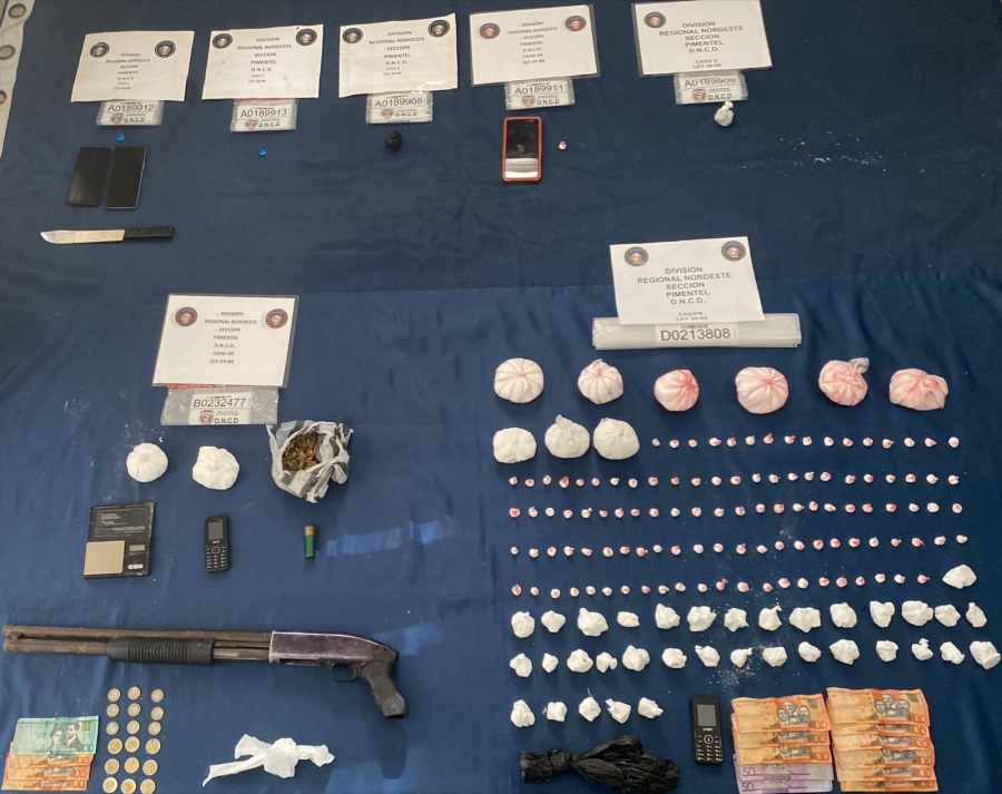 Durante esas acciones, para enfrentar el tráfico ilícito de drogas, se apresaron a 1, 860 personas y se ocuparon además, 17 armas de fuego, 219 balanzas, 63 cuchillos y machetes, 30 radios de comunicación, 541 celulares, 18 vehículos, 102 motocicletas, 02 maquinas tragamonedas, entre otras evidencias.
