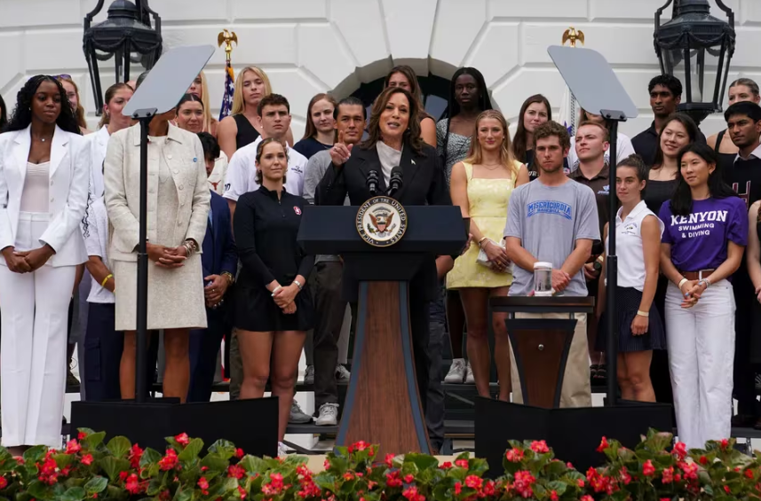 Harris habló en un acto en la Casa Blanca para reconocer la temporada de los equipos de la Asociación Nacional Deportiva Universitaria (NCAA, en inglés), la organización que agrupa la mayoría del deporte universitario estadounidense. Aunque los equipos más famosos de la NCAA suelen ser los de fútbol americano o baloncesto, de los que salen la mayoría de estrellas de la NFL, NBA o de la WNBA, como Caitlin Clark este año, la asociación agrupa 24 disciplinas deportivas.