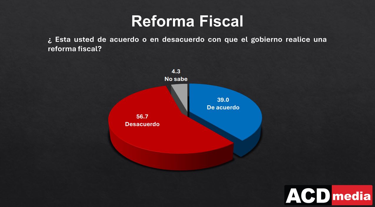 De acuerdo al estudio, que se realizó del 12 al 14 de julio, el 56.7% dijo que está en desacuerdo con una reforma fiscal, el 39.0% manifestó estar de acuerdo y un 4.3% dijo no saber.