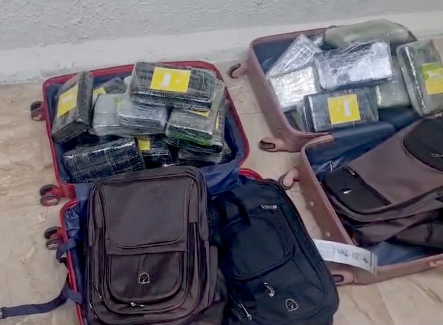 En presencia de un fiscal, se procedió a abrir el equipaje, ocupando en dos maletas, cuatro mochilas en cuyo interior se confiscaron un total de 39 paquetes de la sustancia, con un peso preliminar de 41 kilogramos.