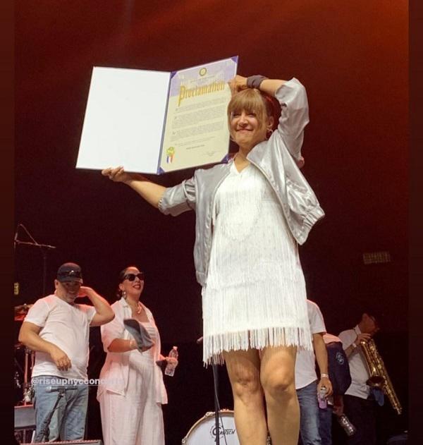 Nueva York.- Durante la celebración del “Summer Stage Festival”, y en reconocimiento a su valor, su contribución a la música latina y como digna representación de la comunidad dominicana en el extranjero el alcalde de la ciudad de New York Eric Adams hizo entrega de una proclama en honor a la reina del merengue Milly Quezada en la que declaró el día 21 de julio como el “DÍA DE MILLY QUEZADA”.