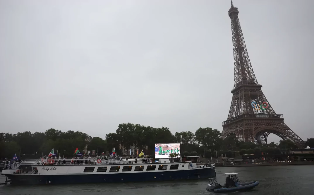 Es la primera ceremonia de la historia celebrada en la calle, fuera del estadio. El grandioso espectáculo preparado en las orillas del Sena al paso de los barcos se desarrolló ajeno a la lluvia, aunque deslucido por la cantidad de agua que caía.