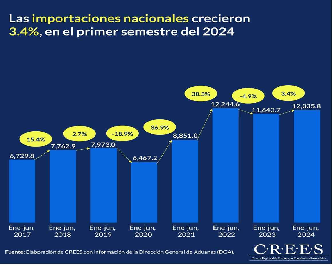 Se incrementan en 3.4% las importaciones en el primer semestre del 2024
