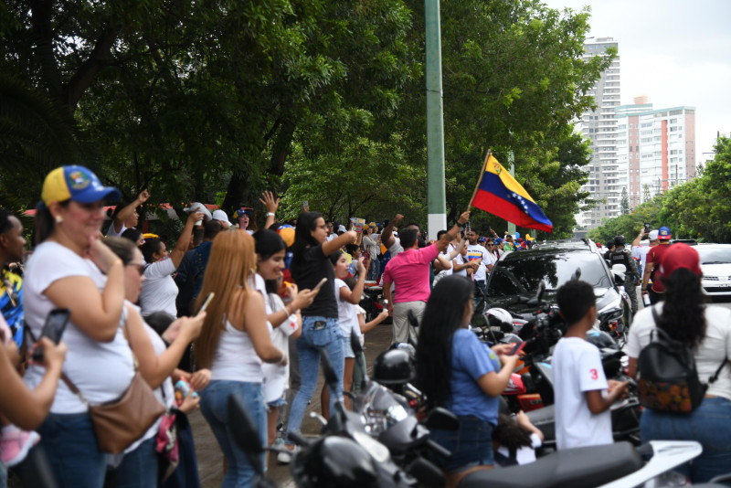 Hombres, mujeres y niños llevan banderas, gorras, pañoletas y otros distintivos, los venezolanos también han recibido apoyo de dominicanos amigos.