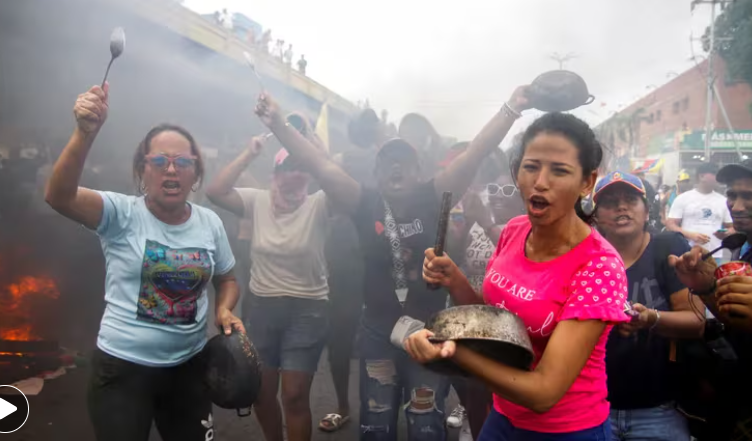 “¡Y va a caer, y va a caer, este gobierno va a caer!”, gritaban miles de manifestantes que marcharon en la gigantesca barriada popular de Petare, la mayor de Caracas. “¡Que entregue el poder ya!”, exclamaban otros.