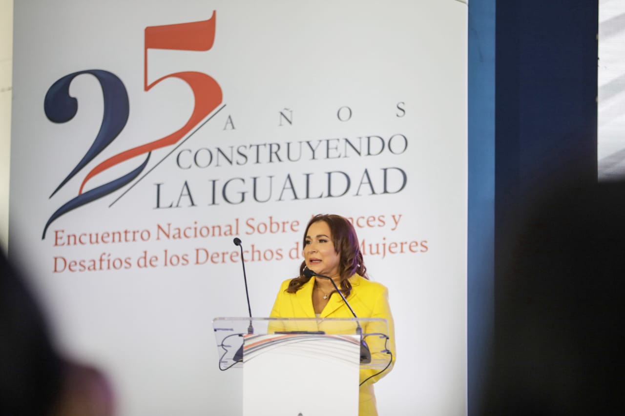 "Hoy, debemos reafirmar con convicción que el eco de la soledad de la mujer dominicana que una vez resonó en el silencio, ha sido reemplazado por un coro de solidaridad y esperanza. Las mujeres dominicanas ya no enfrentan su travesía en la oscuridad solitaria", argumentó Peña durante su participación en el acto conmemorativo por los 25 años del Ministerio de la Mujer.