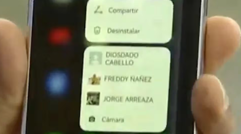 Antes de que el dictador eliminara la aplicación ante las cámaras, se pueden apreciar los contactos del número dos del chavismo, Diosdado Cabello, el ministro de Comunicación, Freddy Ñañez y nuevamente el de Jorge Arreaza.
