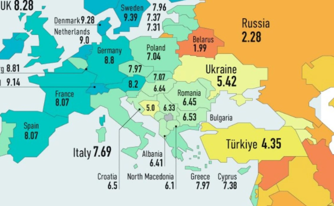 Revisando la calidad democrática de los demás países de la región, en el segmento de régimen híbrido aparecen países vecinos como Perú (77), Ecuador (85) y México (90). Subiendo en la tabla aparecen las democracias defectuosas en las que se encuentra a Panamá (48), Brasil (51), Argentina (54) y Colombia (55). En las democracias con falencias se halla a Chile (26) y Estados Unidos (30), de forma que estos países son superados por Uruguay (15) y Costa Rica (17), los únicos latinoamericanos que entraron al grupo de democracias plenas.