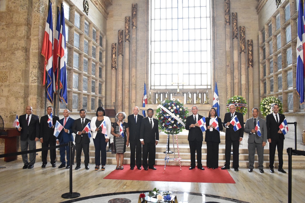 El acto conmemorativo encabezado por Gómez Ramírez en el Panteón de la Patria incluyó una ofrenda floral en homenaje a los héroes de la Independencia y la Restauración cuyas cenizas reposan en ese lugar.