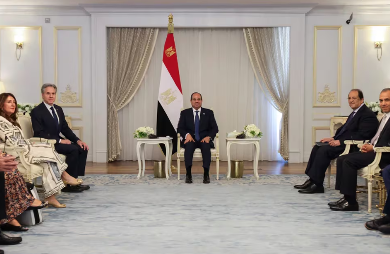 El secretario de Estado de Estados Unidos, Antony Blinken, se reúne con el presidente egipcio, Abdel Fattah el-Sisi, y el ministro de Asuntos Exteriores de Egipto, Badr Abdelatty, en El-Alamein, Egipto, el 20 de agosto de 2024. REUTERS/Kevin Mohatt/Pool