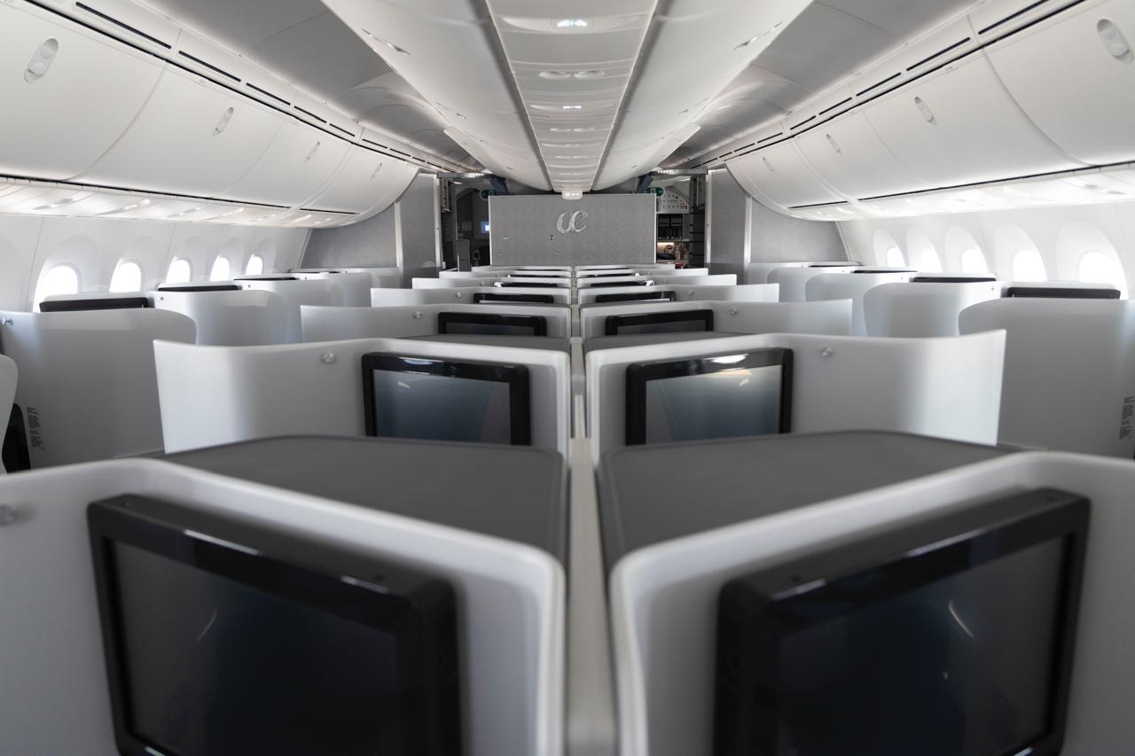 Dispone de ventanas un 30% más grandes de lo habitual, así como de más espacio en cabina y un sistema de ventilación que contribuye a reducir la fatiga en viajes transoceánicos, mejorando el descanso del usuario.