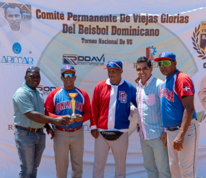 Luego del triunfo, Raúl Bonilla, presidente del Comité Permanente de Béisbol Viejas Glorias, organizadora del evento, entregó el trofeo de campeón al dirigente Eugenio Rodríguez junto a integrantes del conjunto.