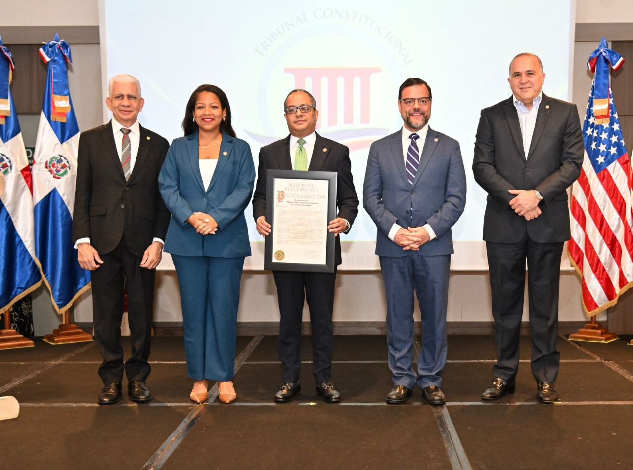 La distinción le fue otorgada, por separado, por Senado del Estado de Nueva York, en la persona del senador Luis R. Sepúlveda, y la Asamblea del Estado de Nueva York, en la persona de la asambleísta Amanda Séptimo, durante un encuentro realizado entre magistrados del #TCRD y la delegación de jueces, legisladores y funcionarios de Nueva York que se encuentran de visita en el país.