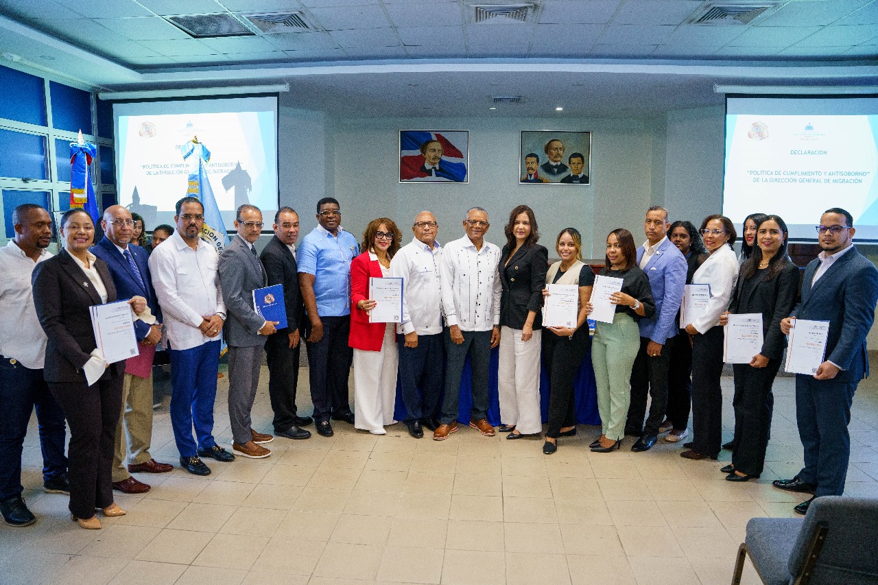 Santo Domingo. _ El director general de Migración, Venancio Alcántara firmó la política de cumplimiento de transparencia, evitar extorsión y corrupción de la DGM, como uno de los pasos para lograr la certificación internacional en base a la norma ISO 37001: 2016 de Sistema de Gestión Antisoborno.