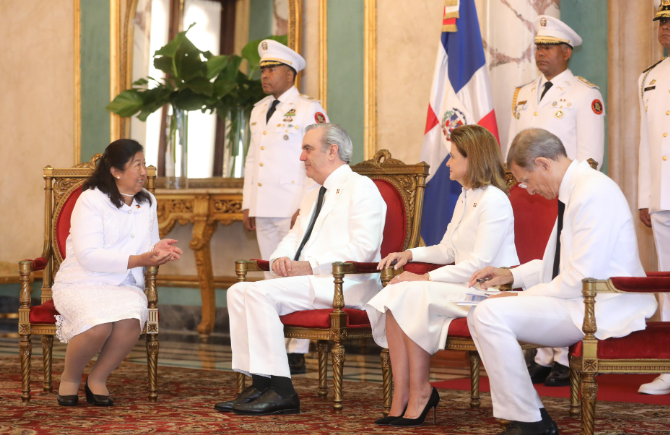 Santo Domingo.- El presidente Luis Abinader, junto con la vicepresidenta Raquel Peña, recibió este miércoles las cartas credenciales de siete nuevos embajadores.