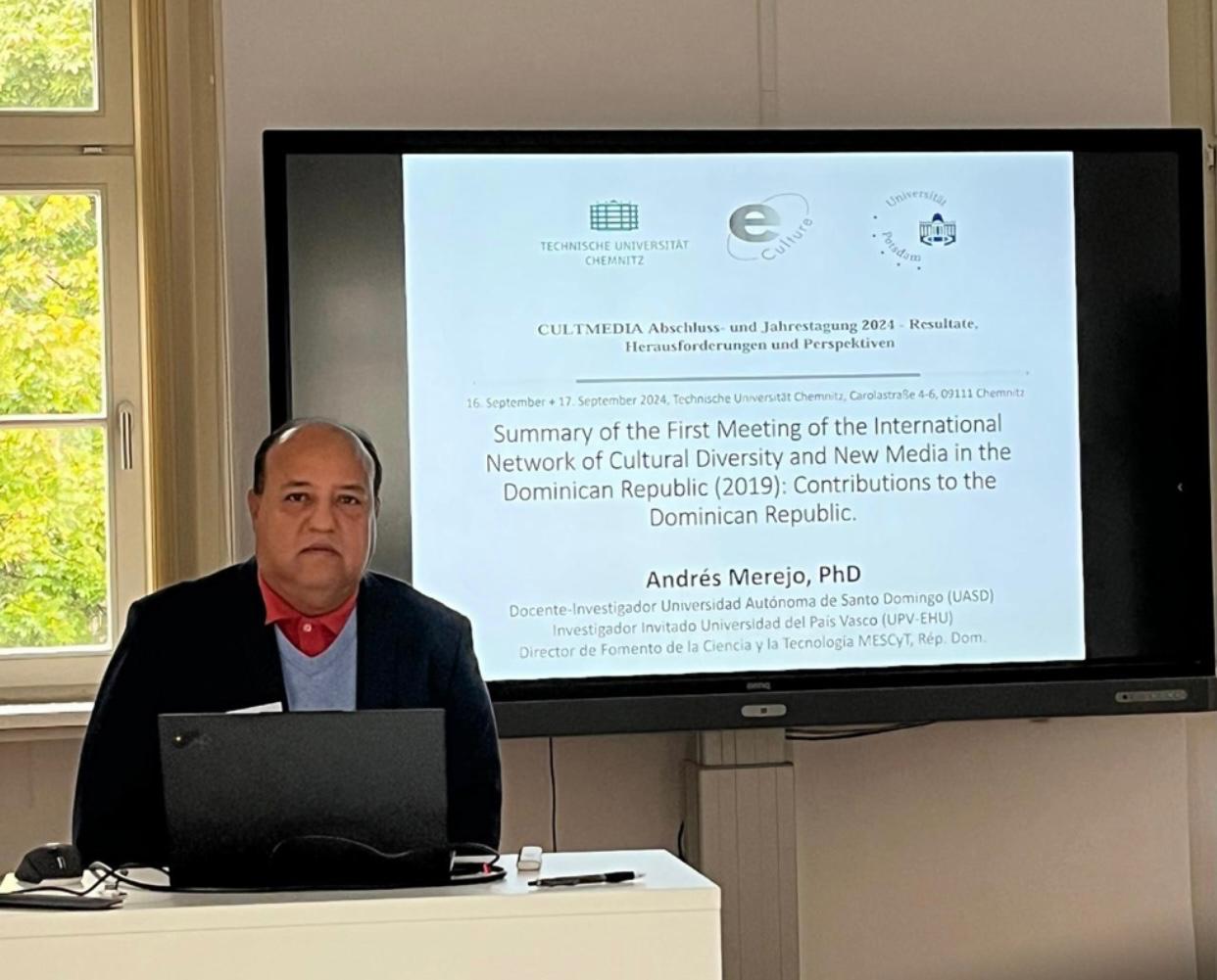 Chemnitz, ciudad de Alemania – En un evento celebrado en Alemania, organizado por la Red CultMedia – International Network of Cultural Diversity and New Media, el filósofo de la cibernética, lo virtual y la inteligencia artificial, Andrés Merejo, destacó las profundas implicaciones sociales, culturales, educativas y políticas que la Revolución 4.0 y la inteligencia artificial (IA) tienen para la República Dominicana.