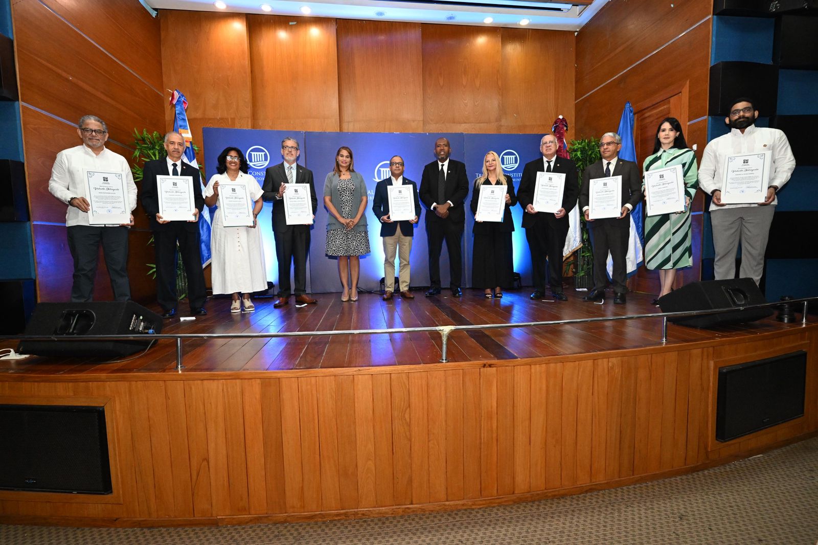 En el marco del acto de apertura del diplomado, el Ayuntamiento de La Romana declaró huéspedes distinguidos a los jueces que conforman el Pleno del TC encabezado por el magistrado Napoleón R. Estévez Lavandier, y los magistrados Miguel Aníbal Valera Montero y Eunisis Vásquez Acosta, primer y segunda sustitutos; Domingo Gil, Fidias F. Aristy Payano, José Alejandro Ayuso, Alba Luisa Beard Marcos, coordinadora del diplomado, Manuel Ulises Bonnelly Vega, Army Ferreira y Amaury A. Reyes Torres, presentes en la actividad.