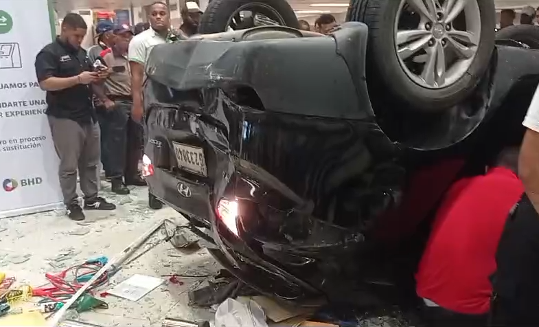Santo Domingo RD–Pasado el mediodía de este miércoles un vehiculó cayó desde el techo de el Supermercado El Nacional en la 27 de Febrero.