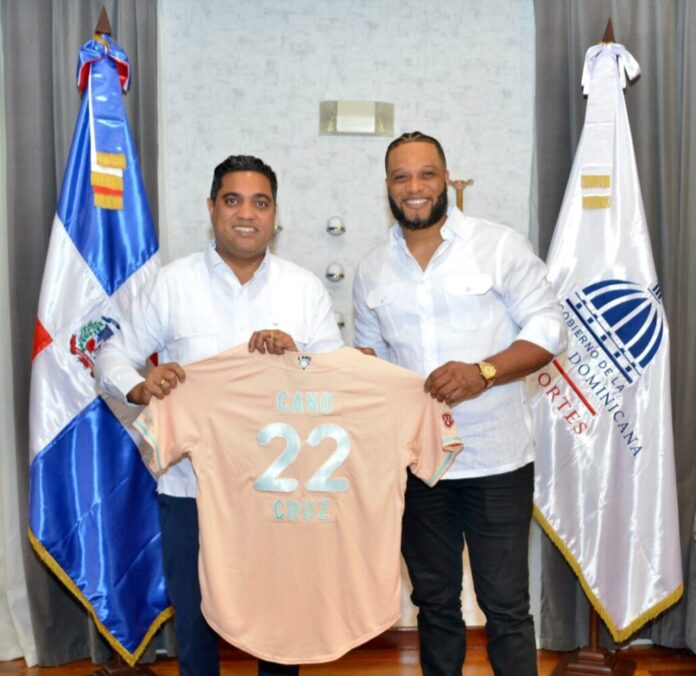 Santo Domingo- El ministro de Deportes y Recreación, Kelvin Cruz, recibió la visita del jugador de béisbol, Robinson Canó, quien viene de ganar el premio de Jugador Más Valioso de la Liga Mexicana de Béisbol de Verano (LMB) con el conjunto de los Diablos Rojos de México.