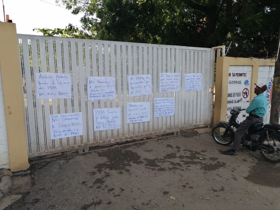 Navarrete, Santiago.-.- Miembros de la base del Partido Revolucionario Moderno (PRM) le pusieron un candado al portón de acceso al distrito educativo 08-07, en el municipio de Navarrete.