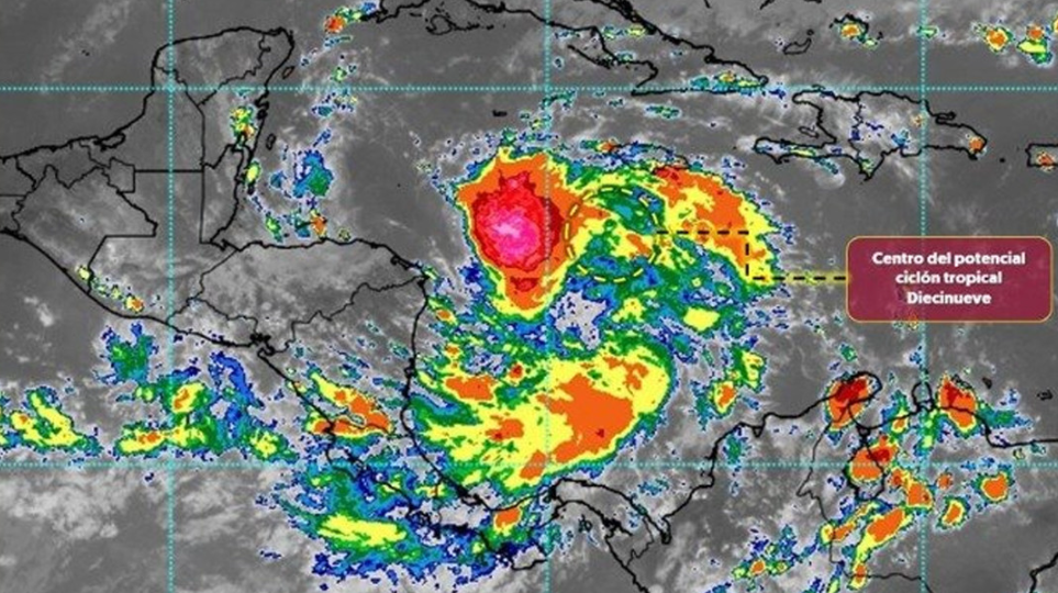 En la noche de este miércoles se formó un potencial ciclón tropical en el mar Caribe, el número 19 en la actual temporada ciclónica en el océano Atlántico, informa el Servicio Meteorológico Nacional de México (SMN).