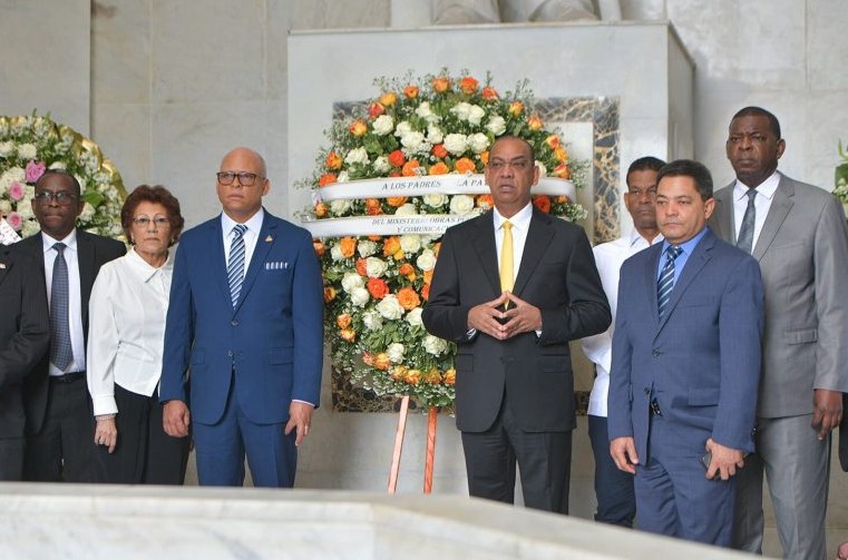También, el ministro Ascención junto a representantes del MOPC, depositó una ofrenda floral ante el Panteón que guarda los restos de los Padres de la Patria.