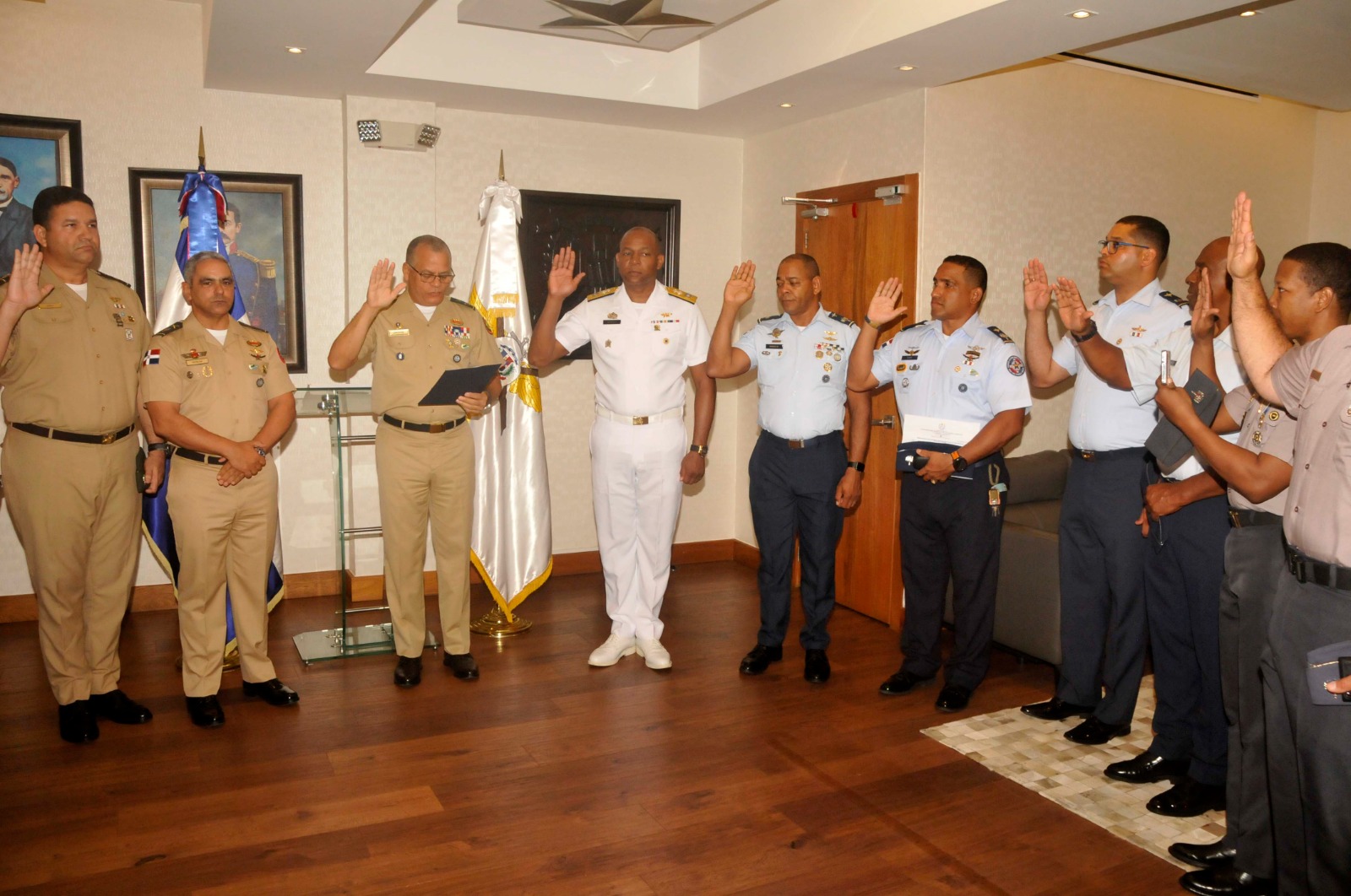 SANTO DOMINGO. – El ministro de Defensa, teniente general Carlos Antonio Fernández Onofre, ERD, junto al general de brigada José Manuel Durán Ynfante, ERD, presidente de la Confederación Deportiva de las Fuerzas Armadas y la Policía Nacional, presidió este miércoles la juramentación del comité organizador de la LIV edición de los Juegos Deportivos de las Fuerzas Armadas y la Policía Nacional, que se celebrarán en 2025.