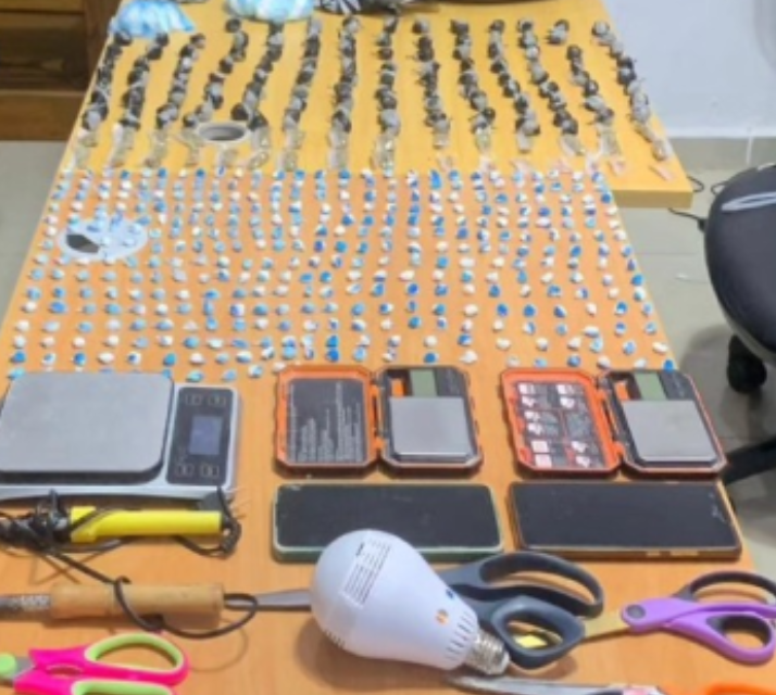 Entre los objetos decomisados se encuentran 1,234 porciones de marihuana, cocaína, crack y molly, además de 9 cápsulas calibre 9mm, múltiples herramientas para el empaquetado de drogas, como soldadoras, tijeras y balanzas, así como cámaras de vigilancia, celulares y una importante suma de dinero en efectivo.