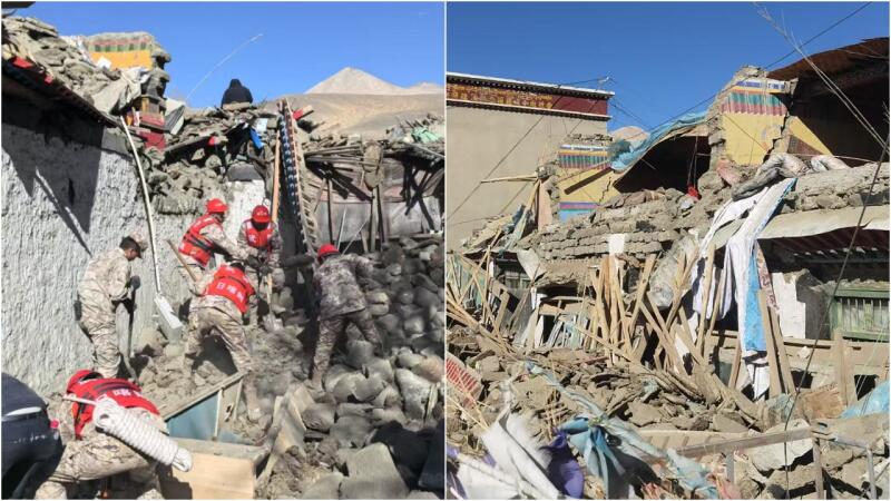 Los equipos de rescate treparon por montones de ladrillos rotos, algunos de ellos utilizando escaleras en las aldeas más afectadas, mientras buscaban supervivientes. Los vídeos publicados por el Ministerio de Gestión de Emergencias de China mostraban a dos personas siendo sacadas en camillas por trabajadores que caminaban sobre los escombros irregulares de las casas derrumbadas.