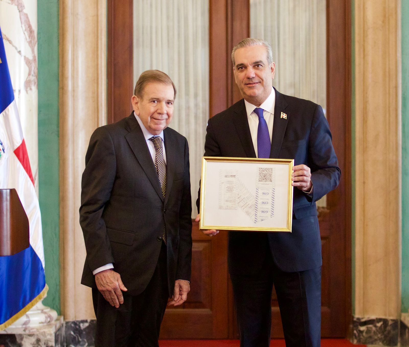 Santo Domingo.- "Edmundo (González Urrutia), a ti, a toda tu familia, a María Corina y al valiente pueblo venezolano, les decimos: su lucha es nuestra lucha", expresó el presidente Abinader durante el acto denominado “Apoyo a la democracia en Venezuela”, en el Palacio Nacional.