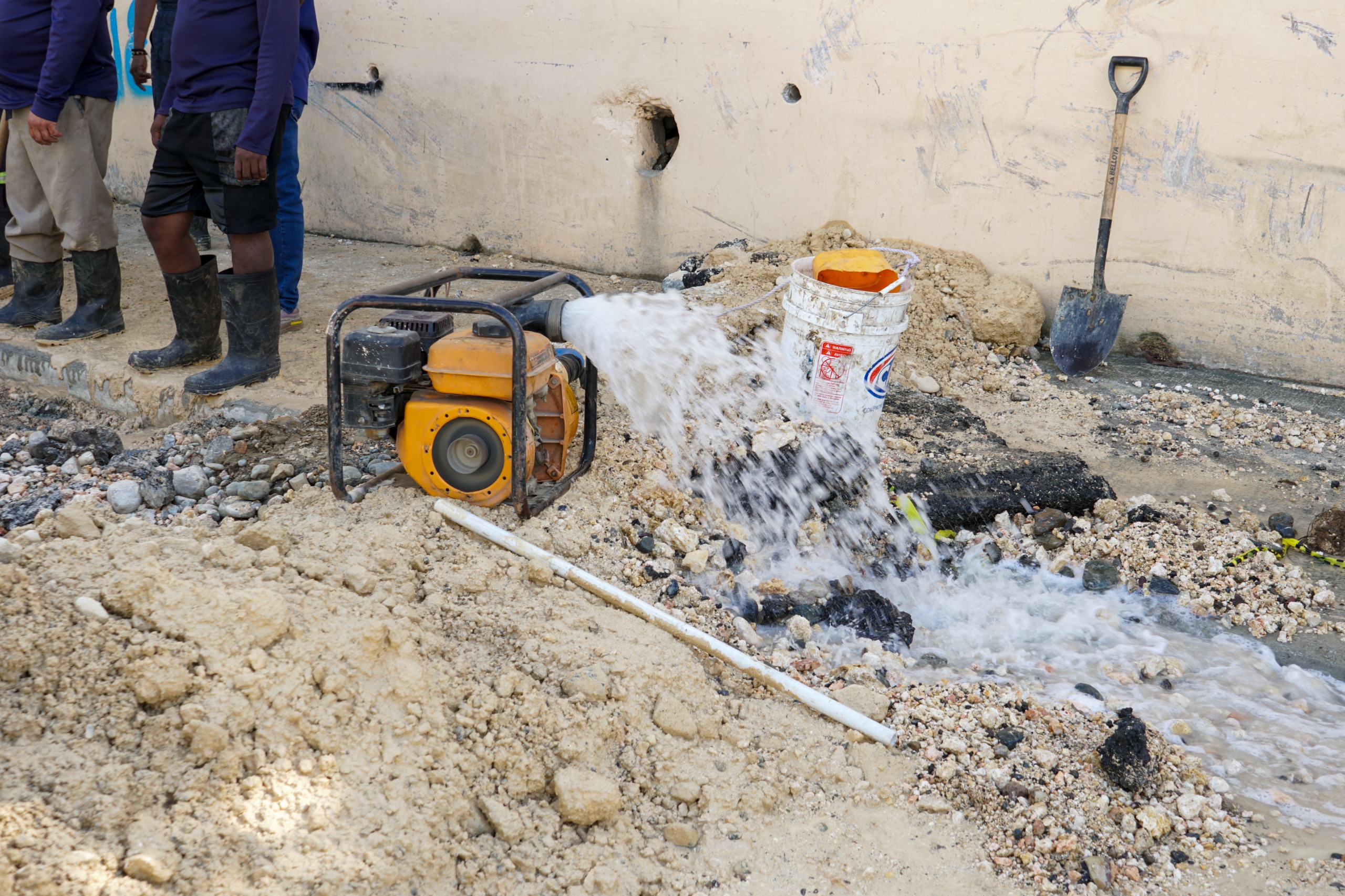 Santo Domingo, RD.- Brigadas de la Corporación del Acueducto y Alcantarillado de Santo Domingo (CAASD) trabajan para solucionar una avería en la línea de distribución de agua potable, localizada en el municipio Santo Domingo Norte.