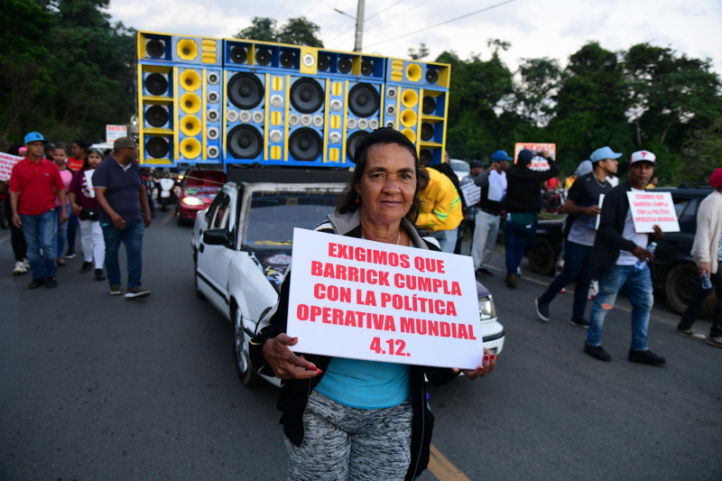 La marcha la encabeza el sacerdote Johnny Durán, párroco de esta población y quien ha dejado saber que seguirá apoyando a los campesinos que serán desalojados para que la Barrick Gold le pague sus tierra y viviendas por el precio de mercado.