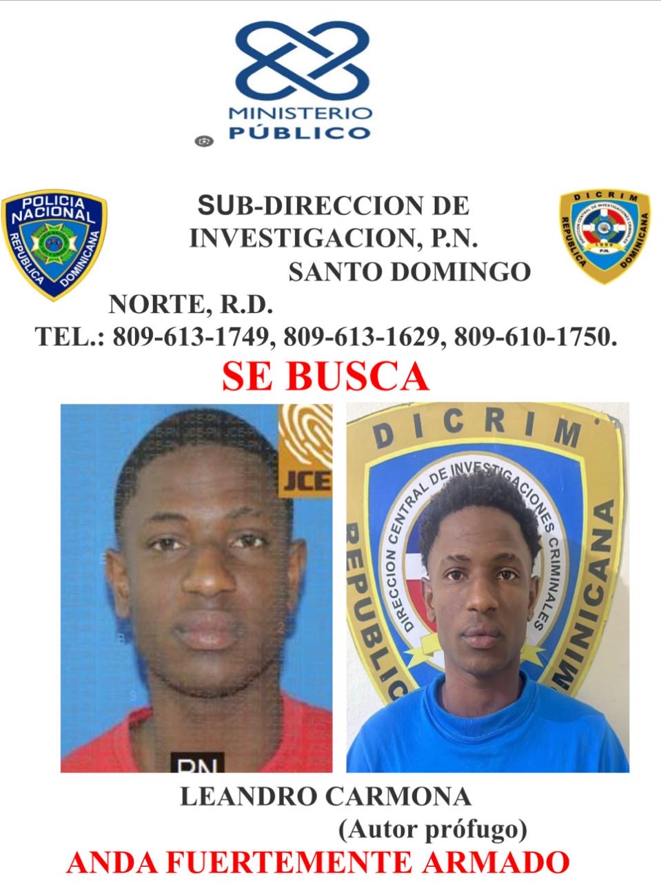 Santo Domingo.- La Policía Nacional informa que se encuentra en la búsqueda activa del reconocido delincuente Andrés de los Santos (a) Yanepa, y su compañero de fechorías Leandro Carmona, señalados como autores de múltiples crímenes violentos cometidos en Santo Domingo Norte, incluyendo homicidios y heridas por arma de fuego ocasionadas a varias personas.