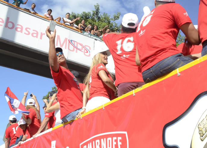 El desfile de la victoria, que inició a las 4:00 p. m. en el Estadio Quisqueya Juan Marichal, reunió a cientos de fanáticos escarlatas que, sin importar el calor ni el retraso de dos horas, se dieron cita para celebrar junto a su equipo el título número 17 en la historia de la franquia.