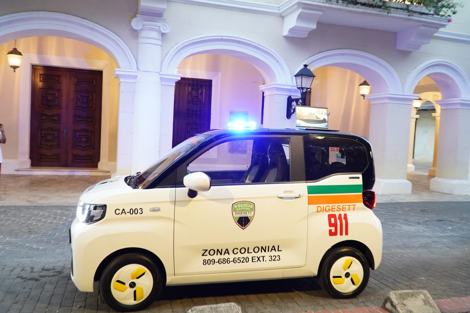 Santo Domingo, RD.-. El director de la Dirección General de Seguridad de Tránsito y Transporte Terrestre (DIGESETT), general Francisco Osoria de la Cruz, P.N., anunció hoy la implementación de un carro eléctrico para seguir mejorando la seguridad vial en la emblemática Zona Colonial. Esta incorporación de vehículo eléctrico se suma a las patinetas eléctricas, con la finalidad de reforzar la vigilancia y el control del tránsito en esta área histórica y turística del país.