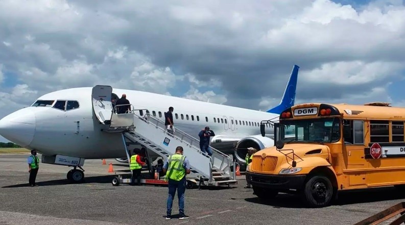 Los deportados fueron recibidos en el área de la rampa del Aeropuerto Internacional Las Américas por funcionarios de la Dirección General de Migración, del Cuerpo Especializado de Seguridad Aeroportuaria y de la Aviación Civil.