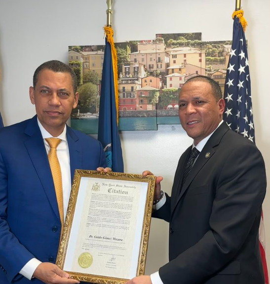 La distinción fue entregada por el asambleísta estatal George Álvarez, quien representa al Distrito 78, una comunidad de aproximadamente 142,000 habitantes en Nueva York. Durante el acto, Álvarez destacó la visión y liderazgo de Gómez Mazara en la implementación de políticas que han fortalecido la conectividad y el acceso a la tecnología en el país caribeño.