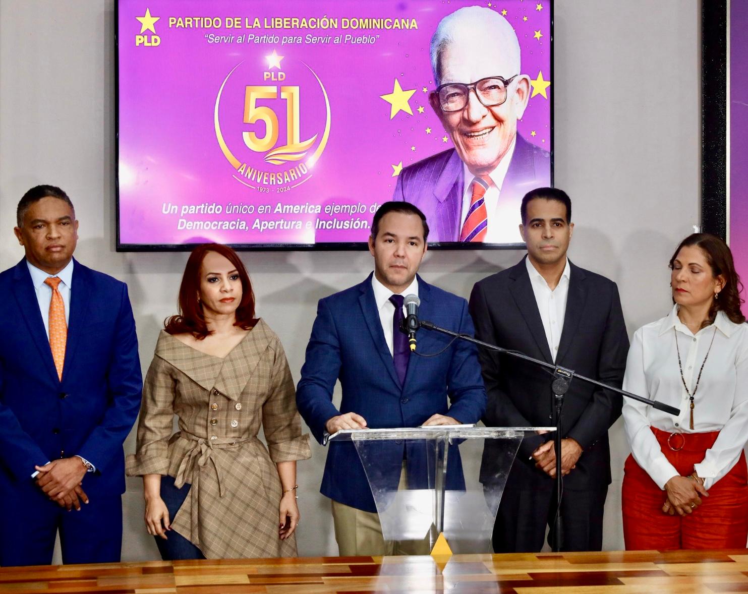 “El PLD no ha señalado ni acusado a periodistas, comunicadores ni a ninguna persona en particular. No lo ha hecho ni lo hará. No practica la difamación, pero tampoco aceptará ser objeto de ella”, expresa el Partido morado y de la estrella amarilla en la rueda de prensa encabezada por Johnny Pujols, su secretario general en compañía de Yván Lorenzo, vicepresidente, Maribel Acosta, José Dantés Díaz, y Karen Ricardo, miembros del Comité Político.