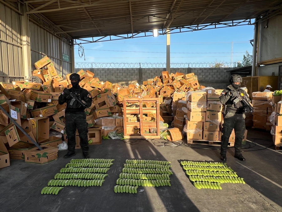 Por instrucciones del fiscal se abrió el contenedor, en cuyo interior se ocuparon, un total de 16 cajas con 303 unidades de bananos verdes, hechos en cerámica, rellenos de la sustancia, con un peso total de 32. 64 kilogramos de cocaína, según determinó el Instituto Nacional de Ciencias Forenses (INACIF).