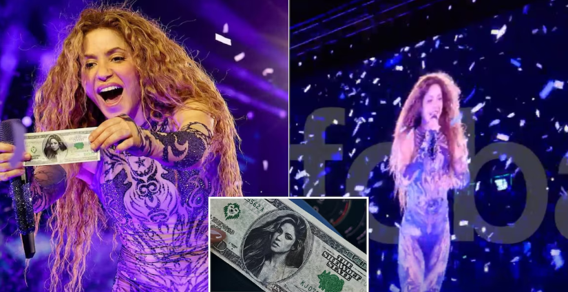 En lugar del típico confetti que suele aparecer al finalizar de un show, la barranquillera quiso hacer único el suyo, fiel a su estilo disruptivo. Es así como, mientras la cantante se despedía al ritmo de la famosa sesión con Bizarrap Vol. 53, volaron miles de ‘shaki dólares’, billetes diseñados con el rostro de Shakira en el centro.