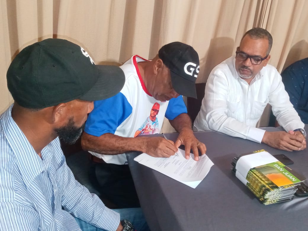San Juan de la Maguana.- La empresa minera Gold Quest y el Proyecto Minero Romero firmaron un acuerdo de colaboración con la Liga Campesina de Beisbol de la provincia para realizar trabajos a favor de los deportistas.