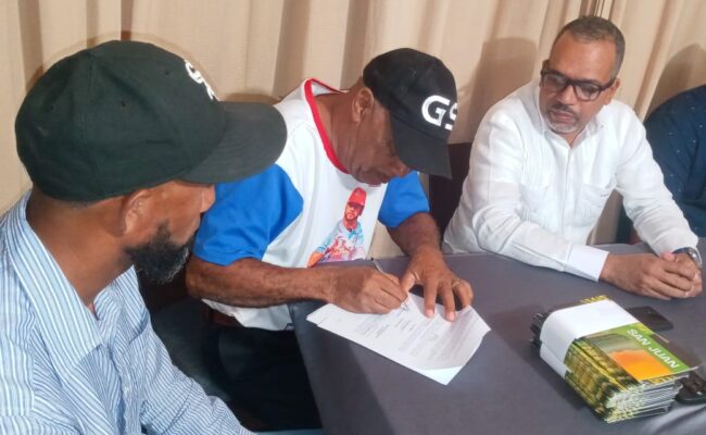 El acuerdo de trabajo y colaboración fue firmado a nombre de la Gold Quest por José Ogando, gerente de medio ambiente y social de la empresa y a nombre de la liga. por Roberto Paulino y Manuel Delgado, presidente y vicepresidente, respectivamente.