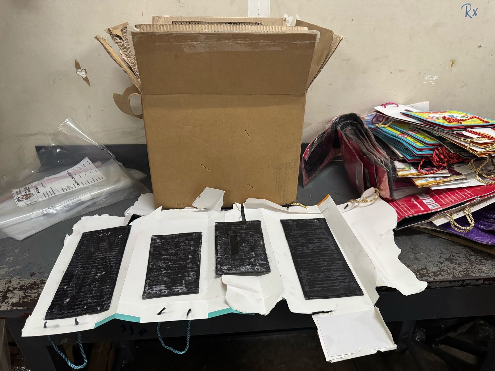 Santo Domingo, DN.-. Agentes de la Dirección Nacional de Control de Drogas (DNCD) y miembros del Ministerio Público frustraron el despacho de ocho (08) laminas de cocaína, camufladas en las tapas de varias cajas de cartón, así como dos amortiguadores de motocicletas, llenos de la misma sustancia, que serían enviados a Europa y Estados Unidos.