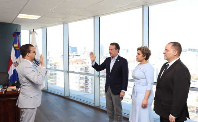 Santo Domingo, RD.-. El ministro de Industria, Comercio y Mipymes, Víctor (Ito) Bisonó, juramentó a Víctor Rogelio Benavides Valerio como nuevo director ejecutivo de la Comisión Nacional de Defensa de la Competencia (Pro-Competencia), quien sustituye a Fior D’aliza Alduey Mercedes.