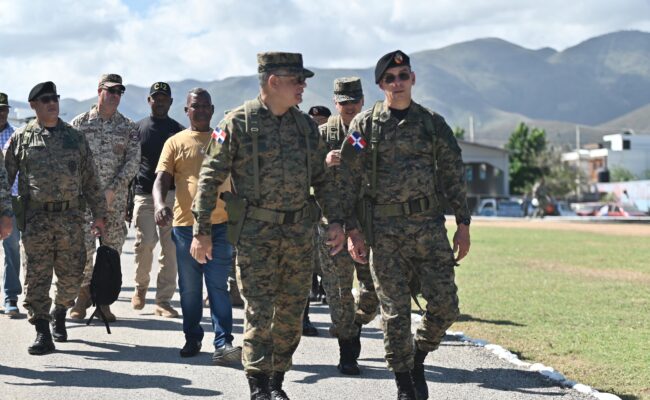 Santo Domingo, RD.-. El ministro de Defensa, teniente general Carlos A. Fernández Onofre, ERD., realizó un recorrido de supervisión en las provincias de Pedernales, Jimaní, Elías Piña y Dajabón, con el propósito de evaluar la preparación operativa de las tropas desplegadas en la frontera y verificar el avance de la construcción de la verja perimetral fronteriza.
