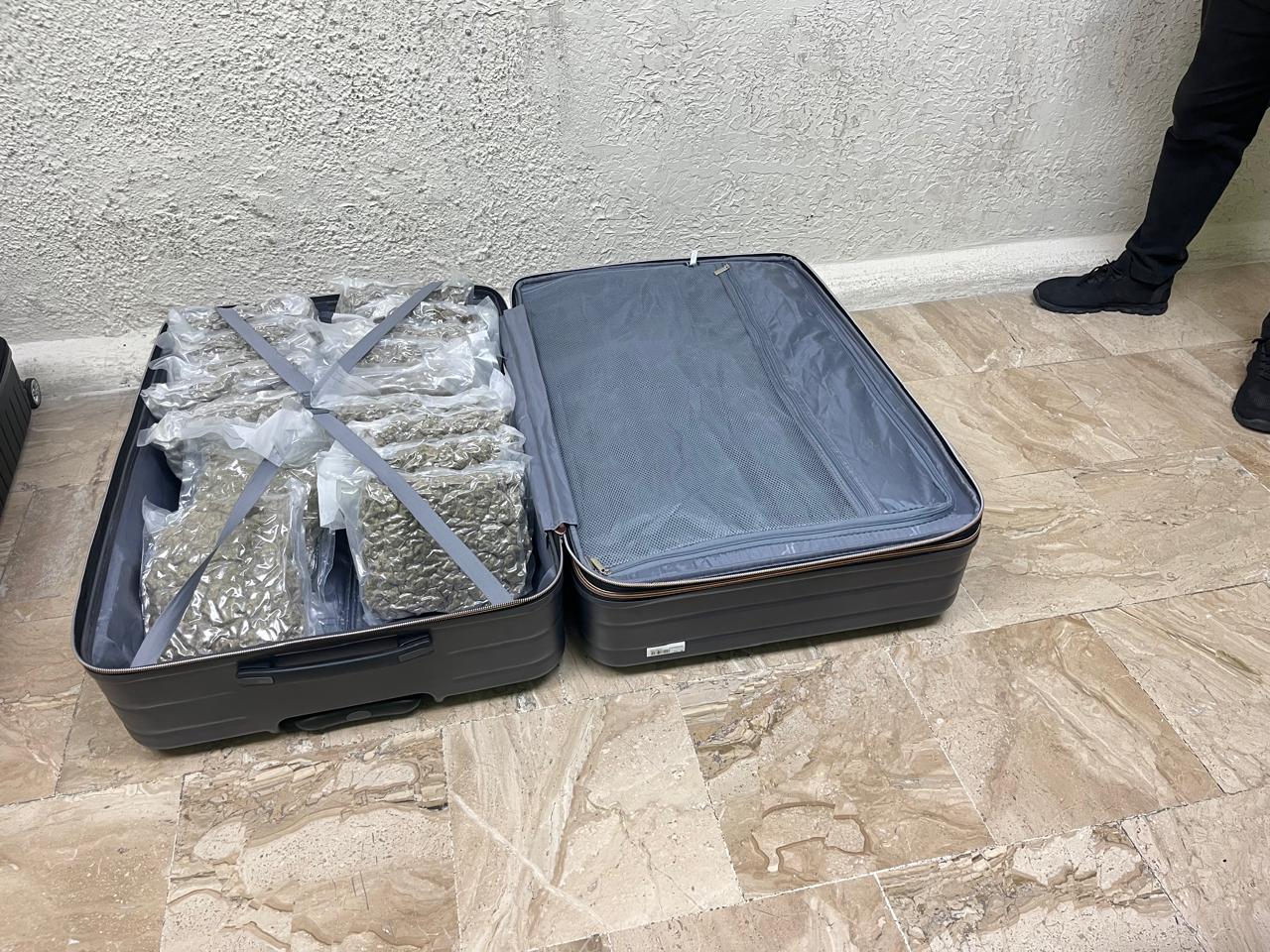 Por instrucciones del fiscal se abrieron las dos maletas, encontrando en una de ellas 45 paquetes y en otro equipaje, otros 34, para un total de 79 paquetes de marihuana, envueltos en fundas plásticas transparentes y de color negro.