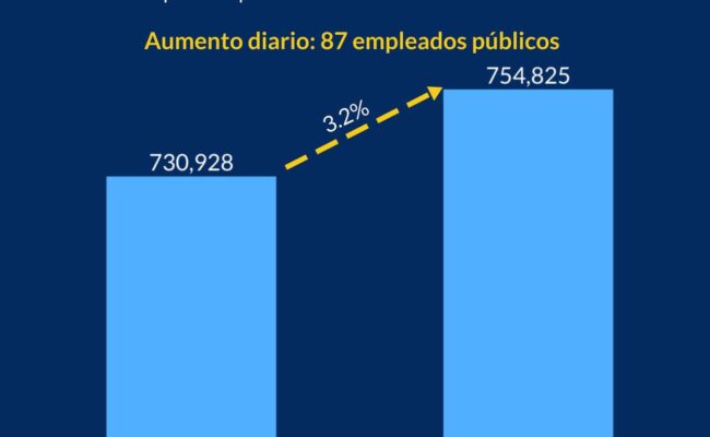 Asegura que en 2023 la nómina pública cerró en diciembre con 730,928 empleados, mientras que en el mismo mes de 2024 finalizó en 754,825.