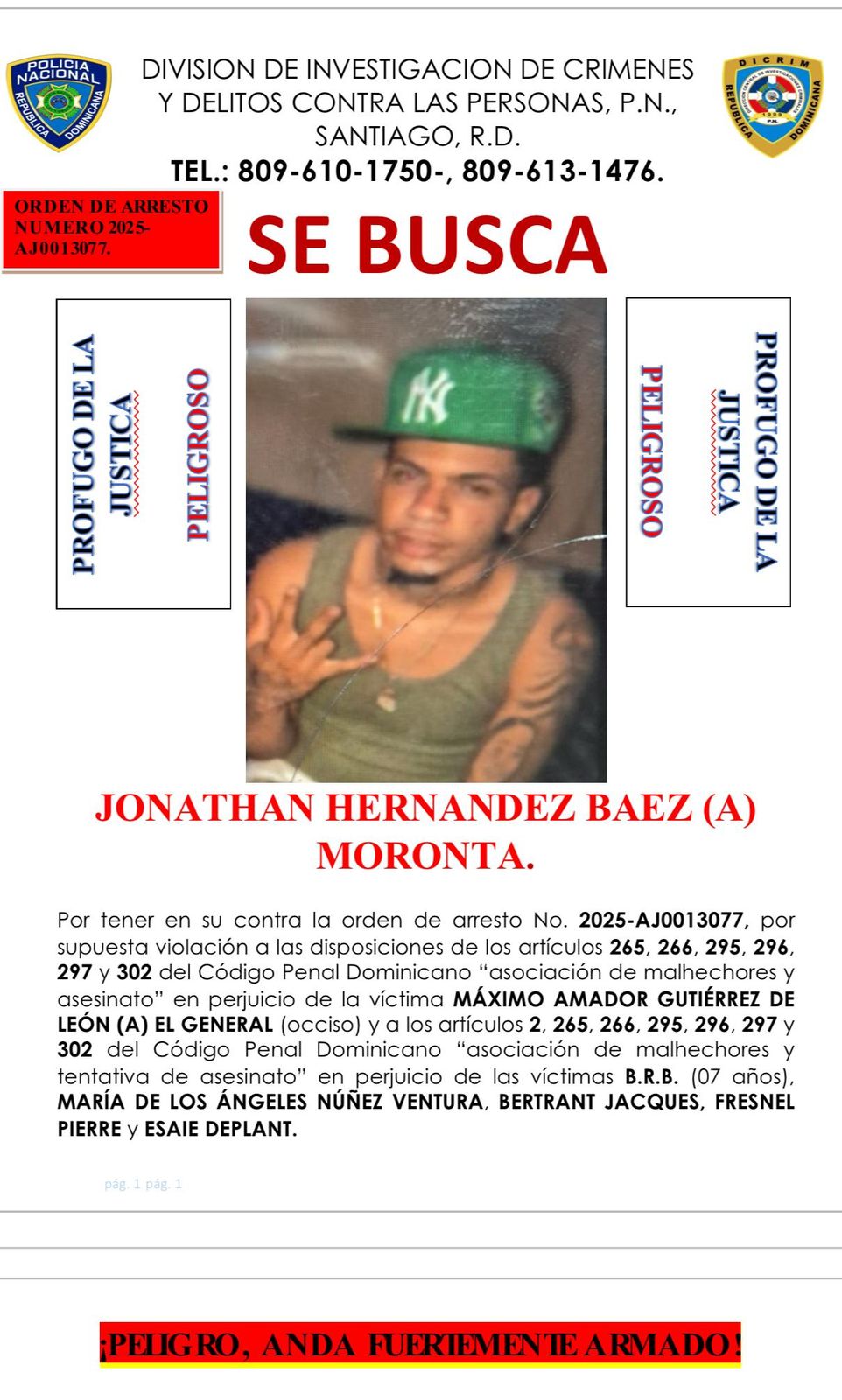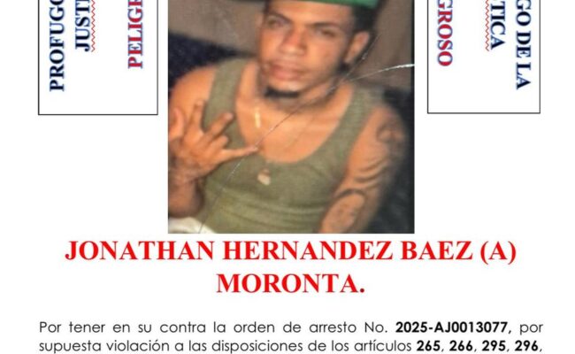 Se trata de Jonathan Hernández Báez (a) Moronta, señalado como uno de los responsables de un hecho violento ocurrido el pasado 2 del presente mes y año, en el sector El Fondo de la Botella, en Pekín, donde falleció Máximo Amador Gutiérrez de León (a) El General, de 25 años, y seis personas resultaron heridas.