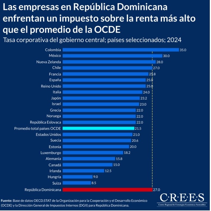 Precisa que, en República Dominicana, de acuerdo con un informe reciente de la Oficina Nacional de Estadísticas, el peso de la carga tributaria constituye uno de los tres principales obstáculos que enfrentan quienes hacen negocios.