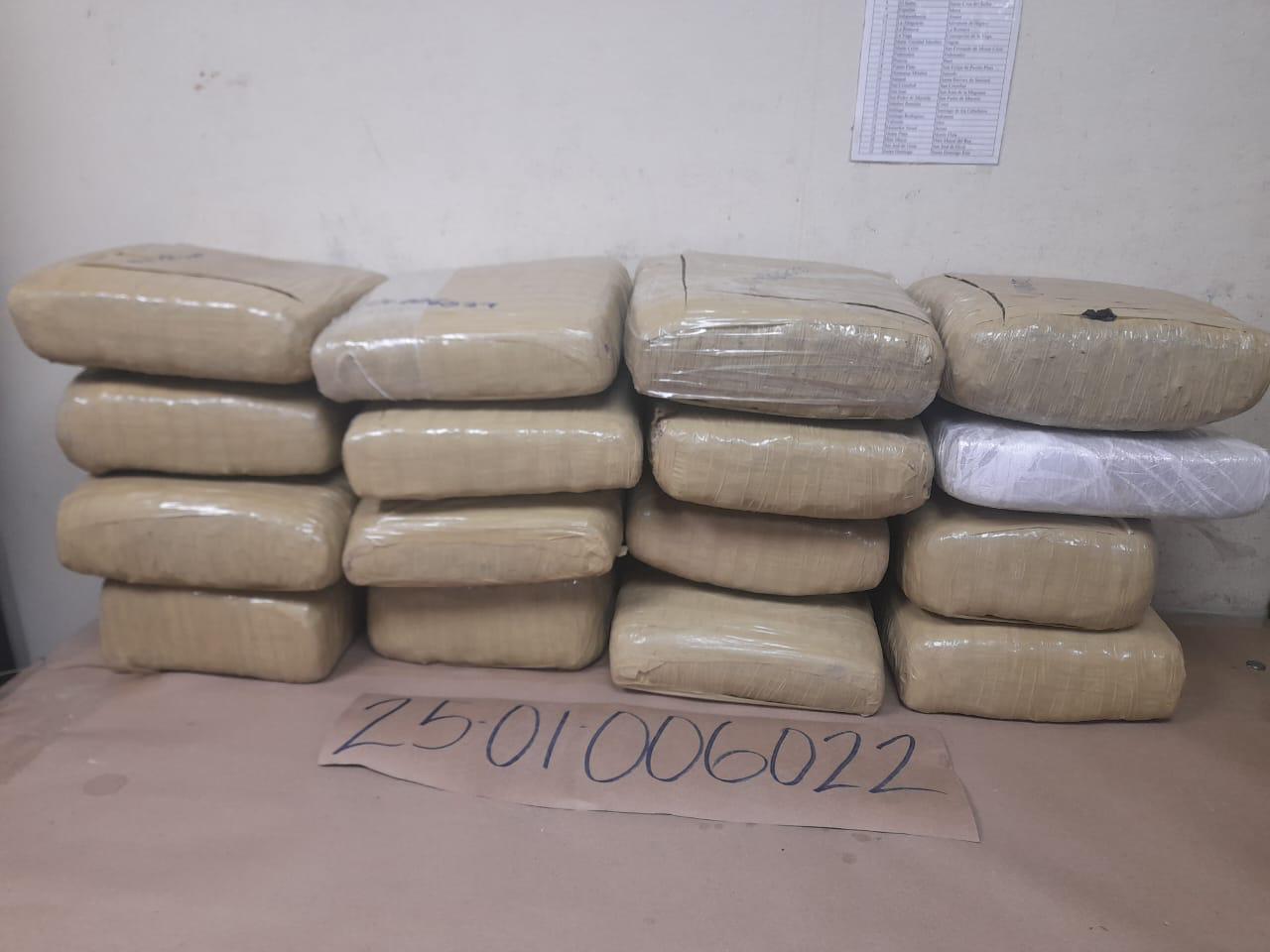 Al entrar a la vivienda, los equipos operativos, ocuparon en la sala una maleta con 11 (once) paquetes del vegetal y otras cinco (05) pacas en el closet de una de las habitaciones, para un total de 16 pacas de marihuana, con un peso total de 99.62 libras, según el análisis del Instituto Nacional de Ciencias Forenses (INACIF).